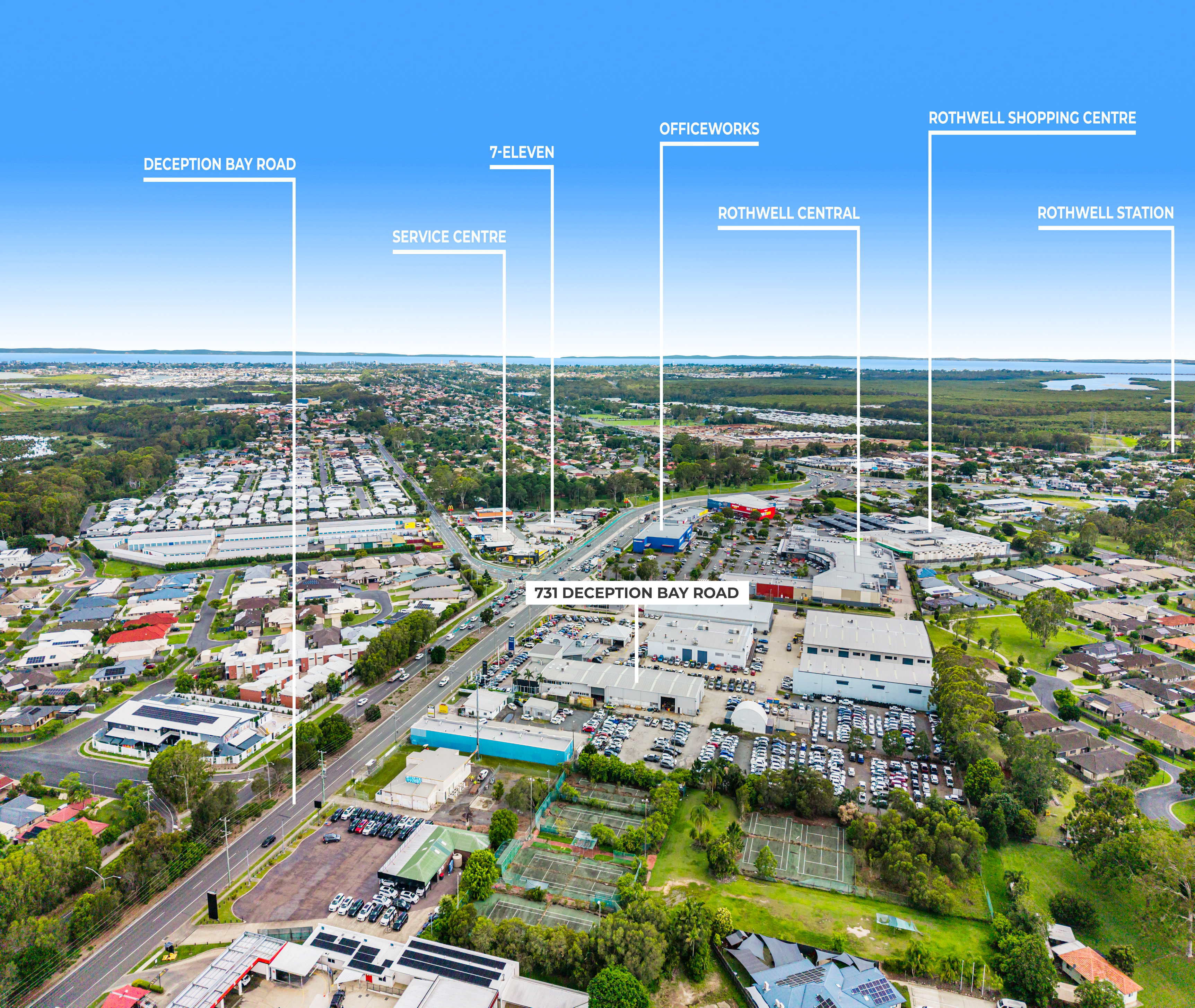 The property in positioned in a well established commercial precinct with high traffic volumes, located in and governed by the Moreton Bay Regional Council. Rothwell is situated 40km north east of the Brisbane CBD.